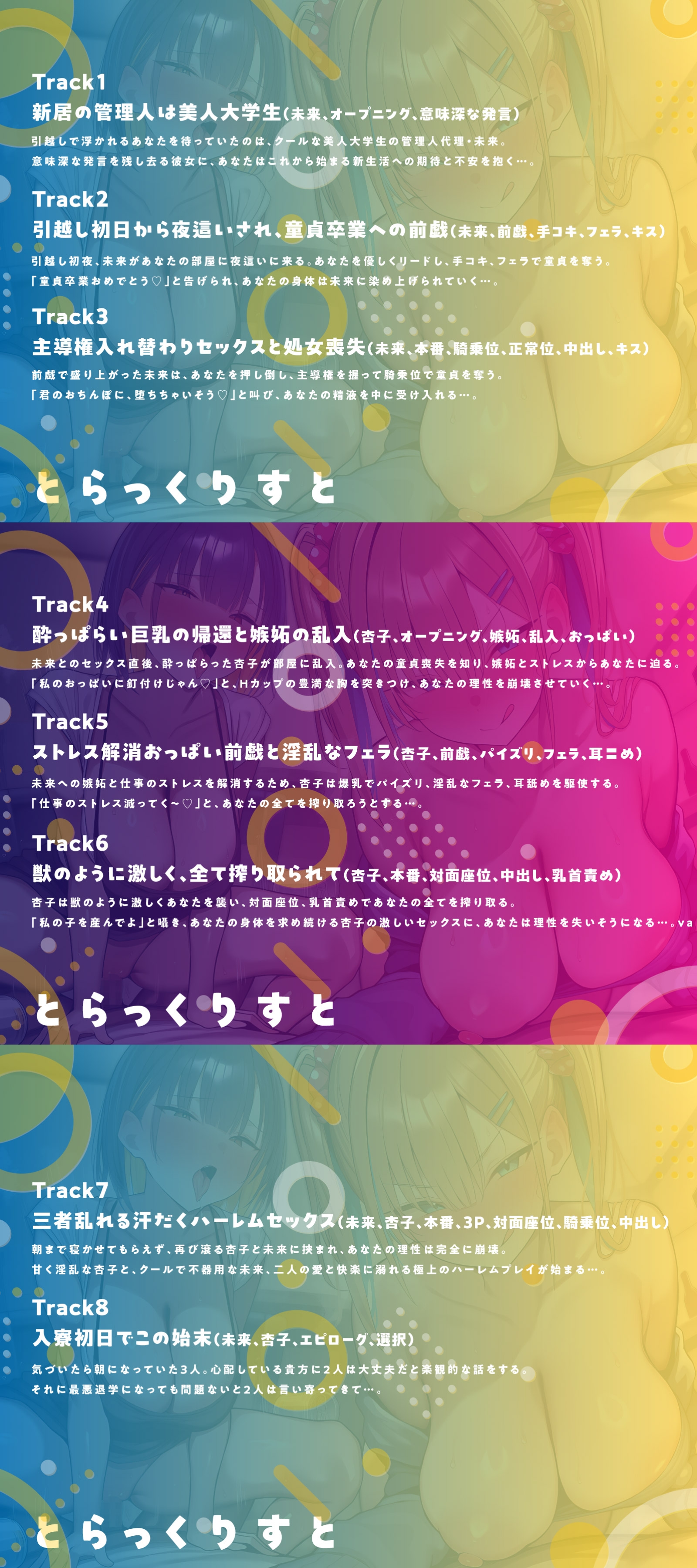 - ジャンル : バイノーラル/ダミヘ ギャル 色仕掛け 快楽堕ち ハーレム ラブラブ/あまあま 中出し 巨乳/爆乳