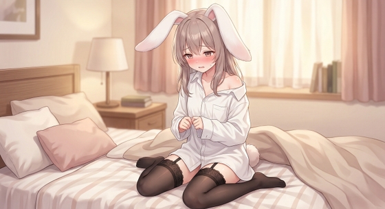 为了讨你欢心,你专属的乖巧兔娘偷偷翻看了你床底下的珍藏杂志,换上了让你移不开眼的性感装扮 。宽大的衬衫下,若隐若现的肌肤与可爱的吊带长筒袜构成了极致的反差诱惑 。更要命的是,特殊的“发情期”让她的身体变得异常敏感且不听使唤 。平时乖巧的她,今天不仅主动索要抱抱,甚至还要拉着你的手,去感受兔娘特有的、比人类更丝滑的腿部肌肉触感 。当温暖的大手触碰到敏感的尾巴根部,酥酥麻麻的刺激让她彻底软化在你的怀中 ……
